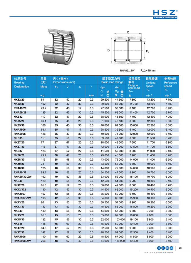 滾針軸承NA49系列
