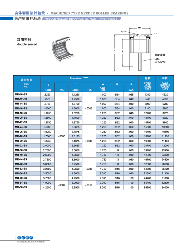 滾針軸承MR..SS系列
